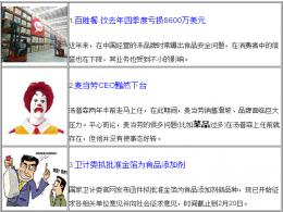 [摘要] 百勝集團公布第四季度財報虧損巨大,麥當勞CEO黯然下臺。春節(jié)近了,衛(wèi)計委擬批準金箔為食品添加劑,因為熱議。 一周餐飲熱點(20150131-20150206) 洋快餐不僅在中國的市場遭受挫折,在美國本土也因為種種問題導致銷售......