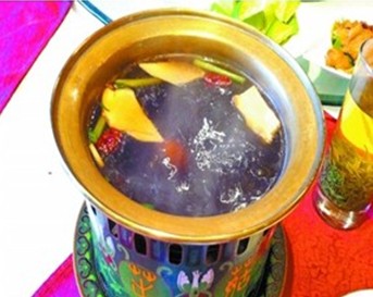 “野生菌滋補保健火鍋湯”由各種名貴野生菌精配調制而成,具有清熱解毒、養血和中、滋補肝腎、舒筋活血等功效。
