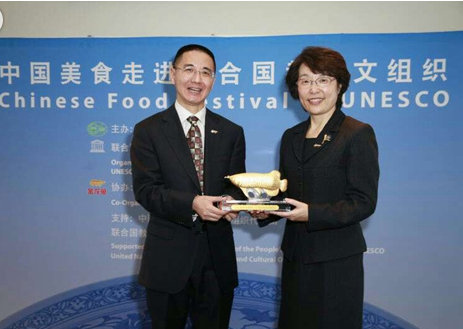 圖為聯合國教科文組織副總干事張秀琴(右一)出席中國美食申遺活動