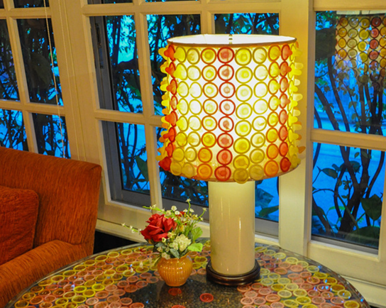 餐廳里面最多的就是避孕套做成的各種燈具造型,這個紅白相間,讓我想起了肥胖的金魚。