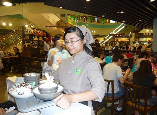 有一天在一家快餐店吃飯,發現在餐盤上墊著一張紙,和麥當勞、肯德雞印著產品廣告不一樣,這張紙上印著一些名人名言,幽默故事,笑話一類的文字,內容很是不俗。當顧客在享用食物時還可以獲得精神上的放松。