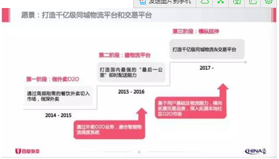 流傳出來(lái)的商業(yè)計(jì)劃書中,百度外賣試圖把自己包裝為千億級(jí)別的同城物流平臺(tái)