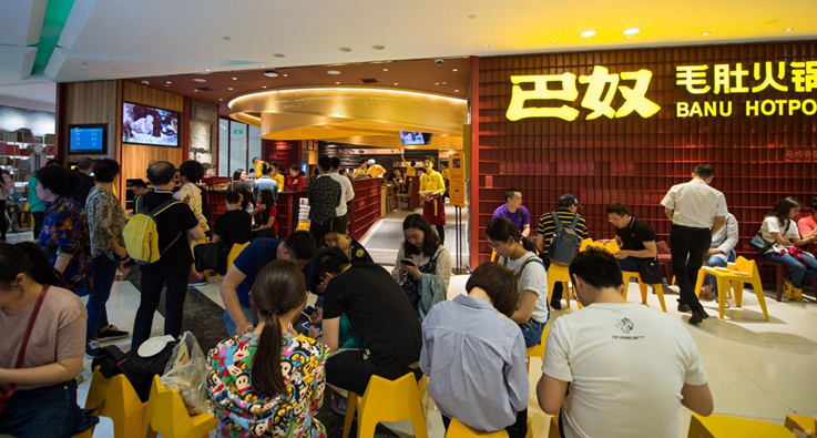 2018年5月16日,在北京東三環(huán)的一處大型購(gòu)物中心里,巴奴毛肚火鍋開(kāi)始了第一天的試營(yíng)業(yè)。當(dāng)天是工作日,晚7點(diǎn)許,商場(chǎng)里人不多,但巴奴門外已經(jīng)有了排隊(duì)的顧客。